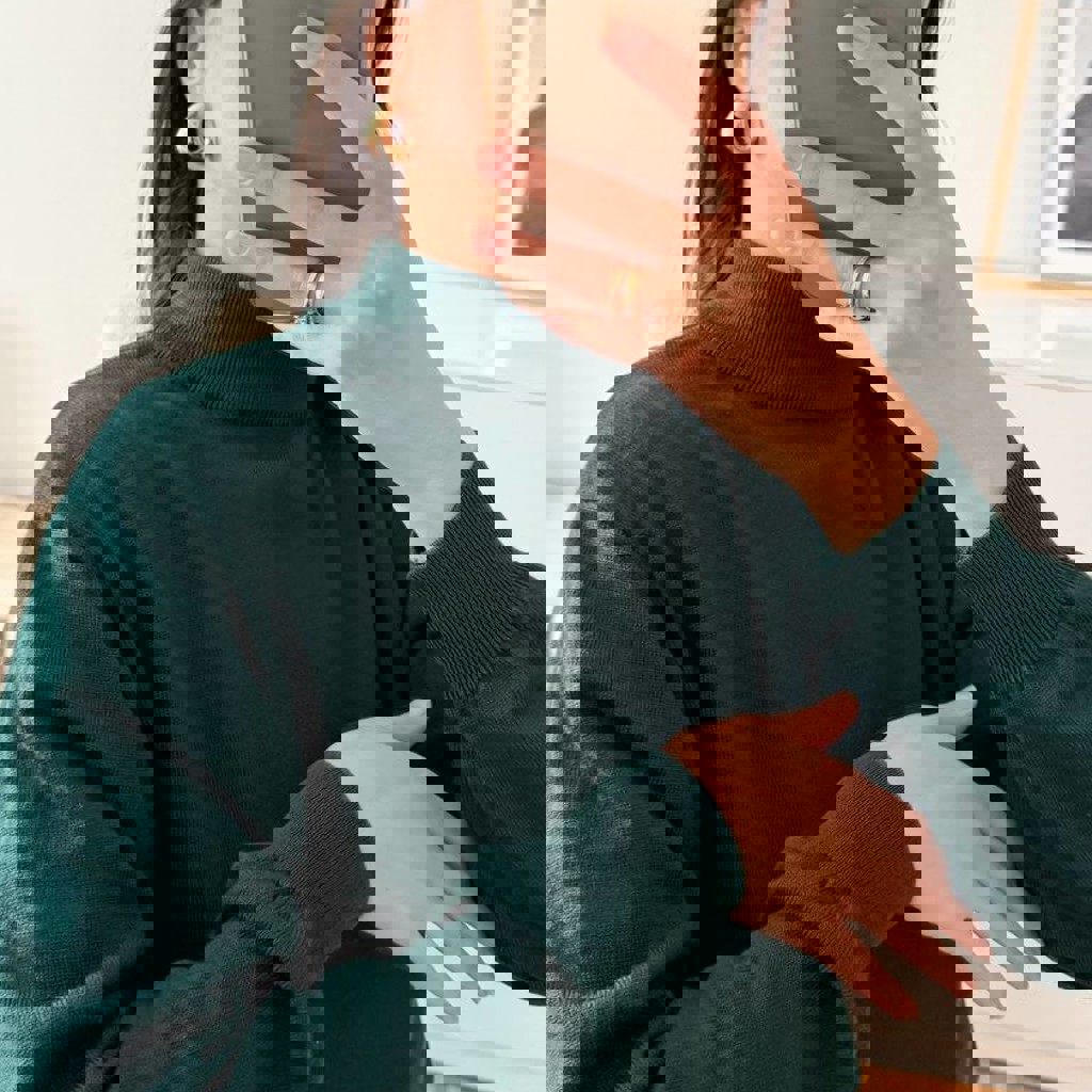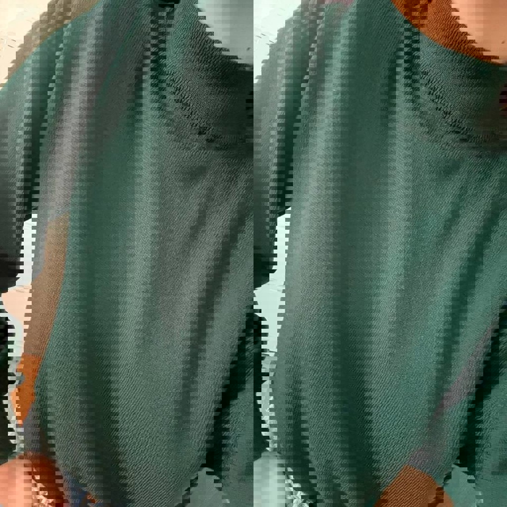 Размер 40 (М). 100% reine schurwolle (pure new wool) - первый состриг: нежная, молодая шерсть высокого качества. Цвет в жизни очень красивый: глубокий темно-изумрудный. Отлично вписывается в дорогие, классические образы.