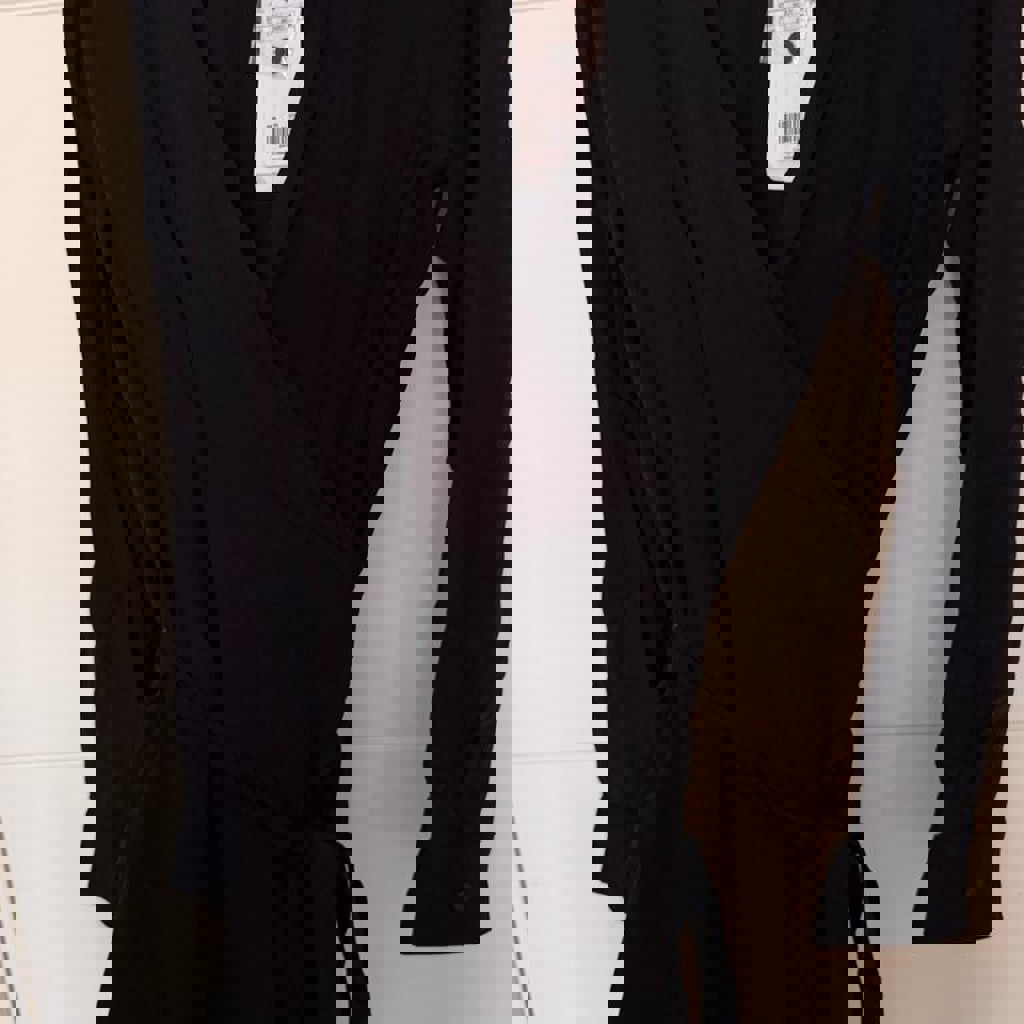 Платье черное на запахе, новое ни разу не носила. Причина - мало.