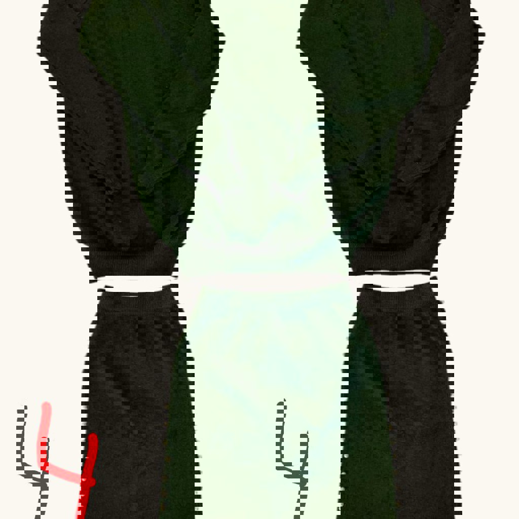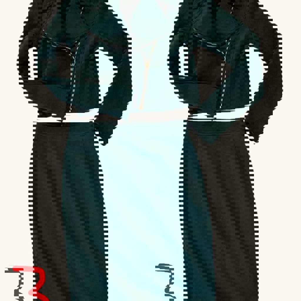 3-4 Женские костюмы глубоких зелёных оттенков (фото, к сожалению, не передаёт цвета). Оба - размер 42/44. Костюм с верхом на молнии из искусственной замши с укороченным верхом. Второй костюм - мягкий полиэстер, без катышков. Верхняя линия рукава - с вырезами. В обоих вариантах юбки-карандаш. Цена - 10 лари за каждый