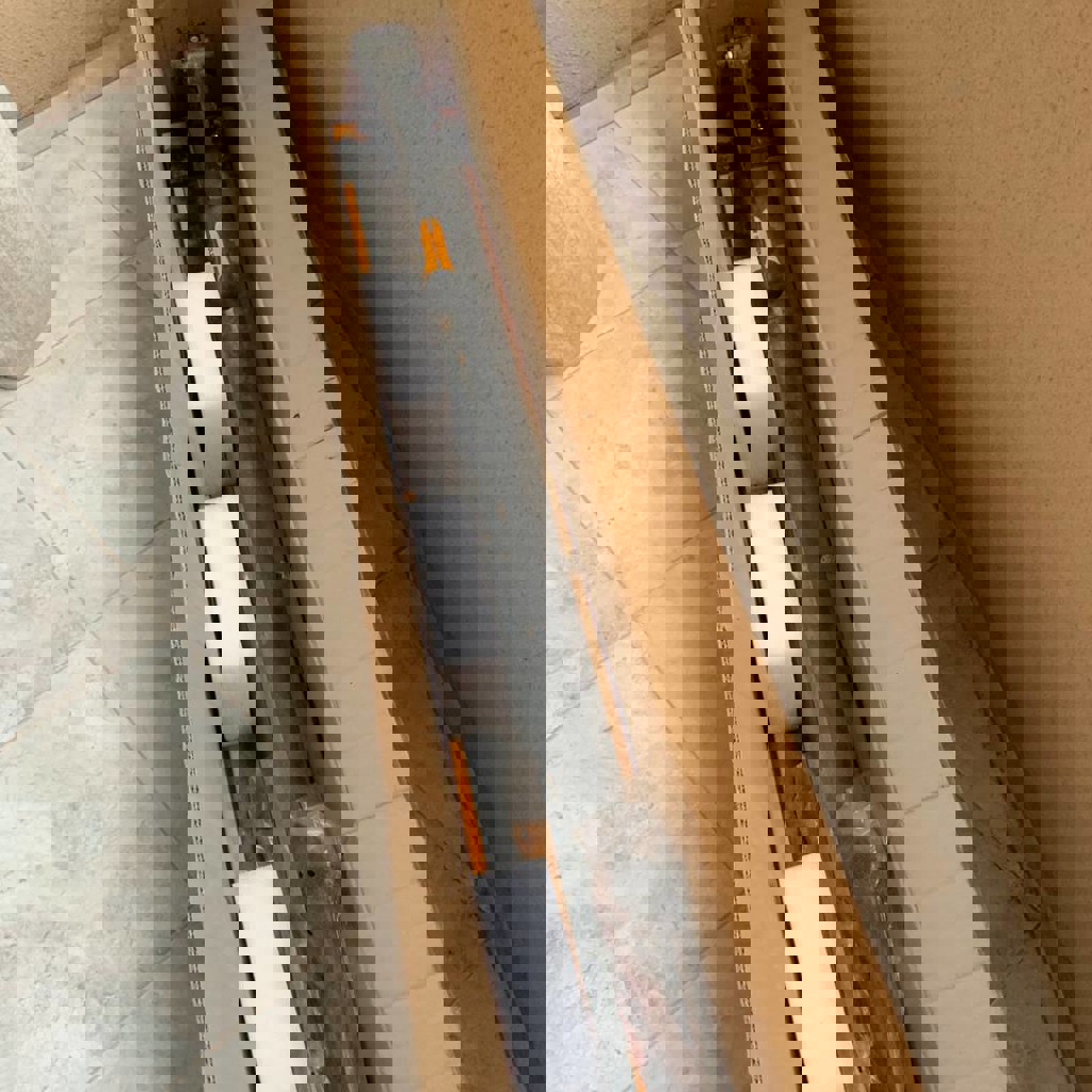 Совершенно новый плиткорез для кафельщиков, немного покрывшийся ржавчиной из-за дождя.