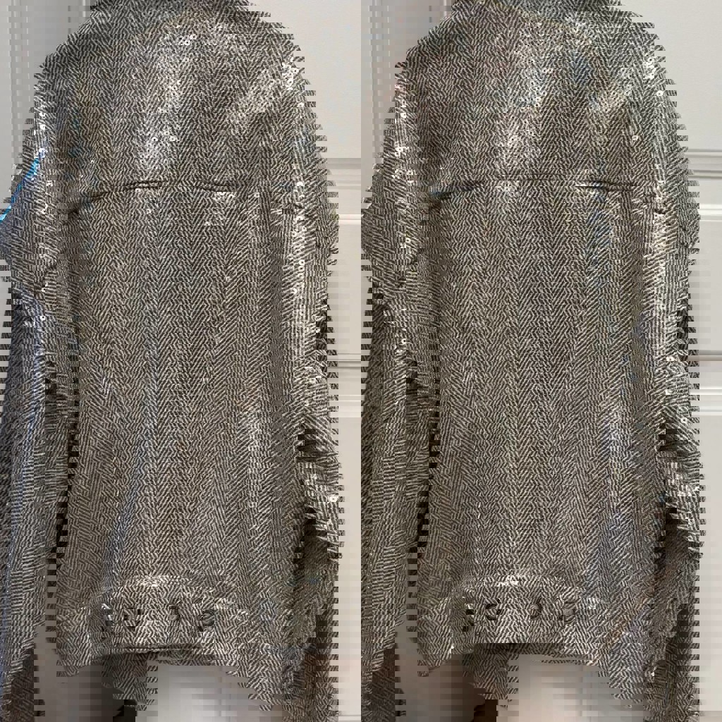 Новая куртка polo garage с биркой. Размер S (оверсайз). Полностью в пайетках, байкерского фасона. Рукава длинные, подойдет на высокий рост.
