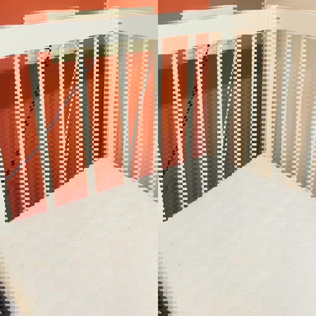 Кроватка 90*50, четвертая стенка отсутствует, Регулировка высоты имеется. В комплекте матрас (на кокосе) с чехлом на замочке, наматрасник, простынь на резинке.