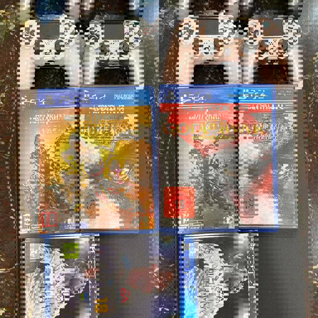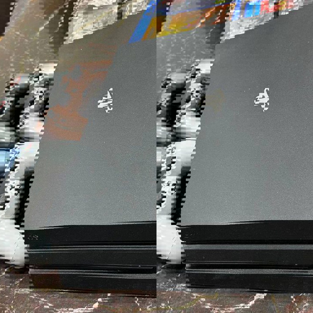 PS Play Station 4 pro с 4 джойстиками, 2 оригинальные два нет. С играми mortal combat 11 ultimate, Fifa18, GOW3 remastered.