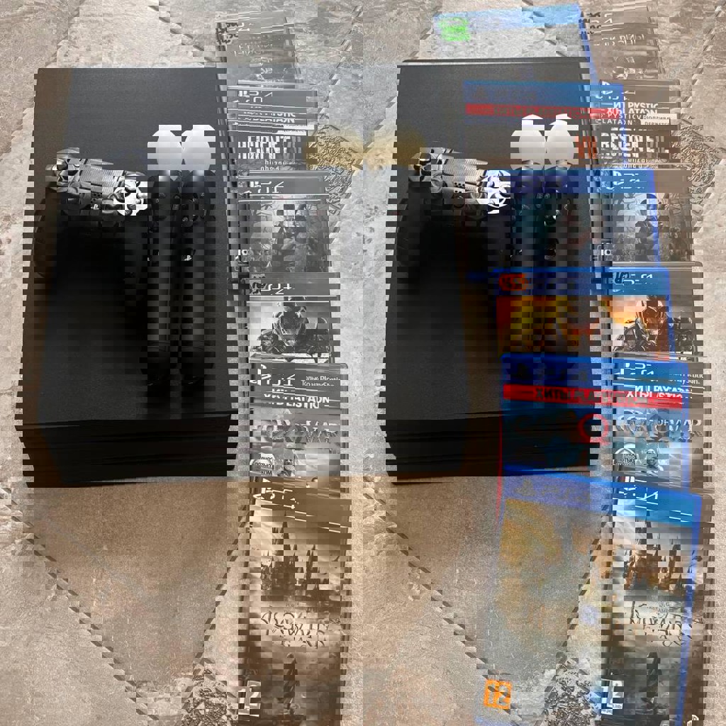 Продаю PlayStation 4 Pro (1TB) в хорошем состоянии. В комплекте: оригинальный джойстик, 2 мува just dance, 6 игр: Hogwards, God Of War, 2 части Resident Evil, Doom, Тени войны.