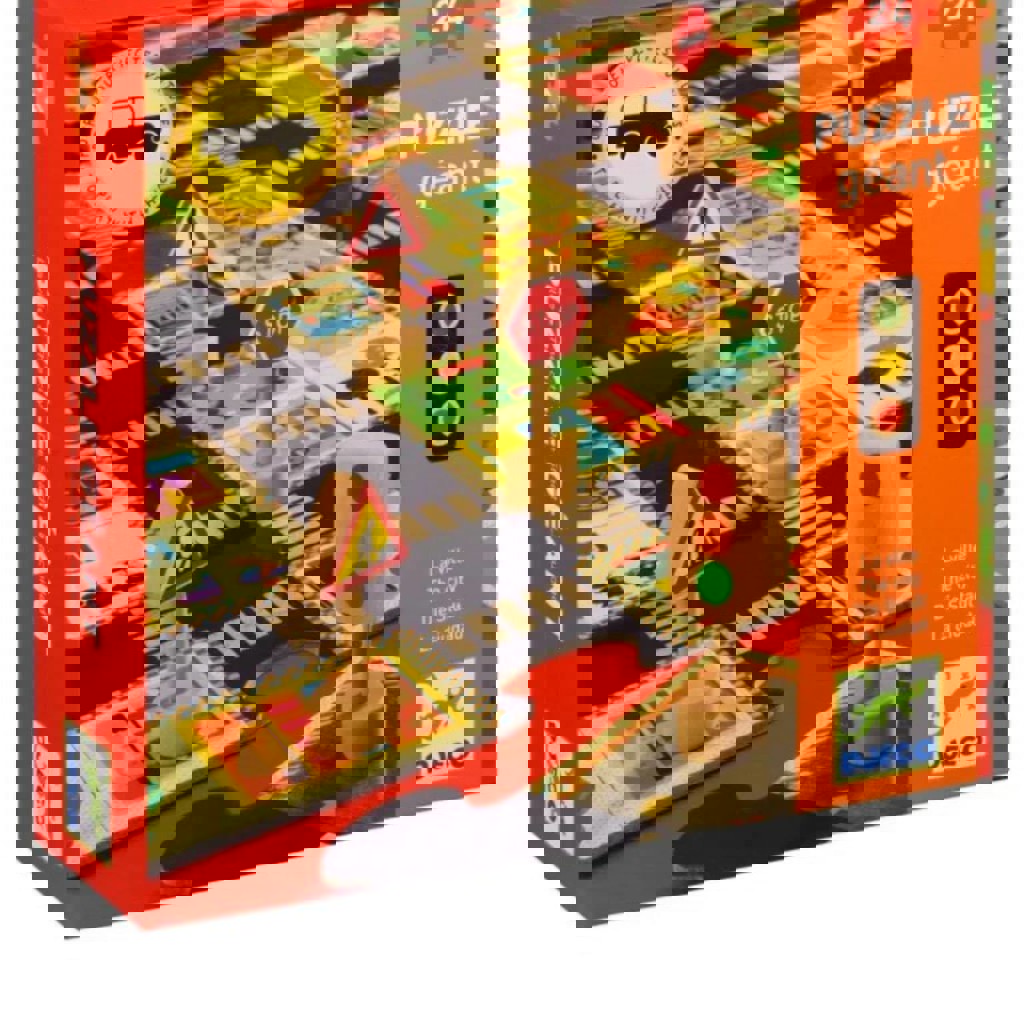 Большой напольный пазл, из которого собирается городская дорога. В комплекте деревянные дорожные знаки. Качественный плотный картон, яркий и красивый. Полный комплект, состояние новое.
