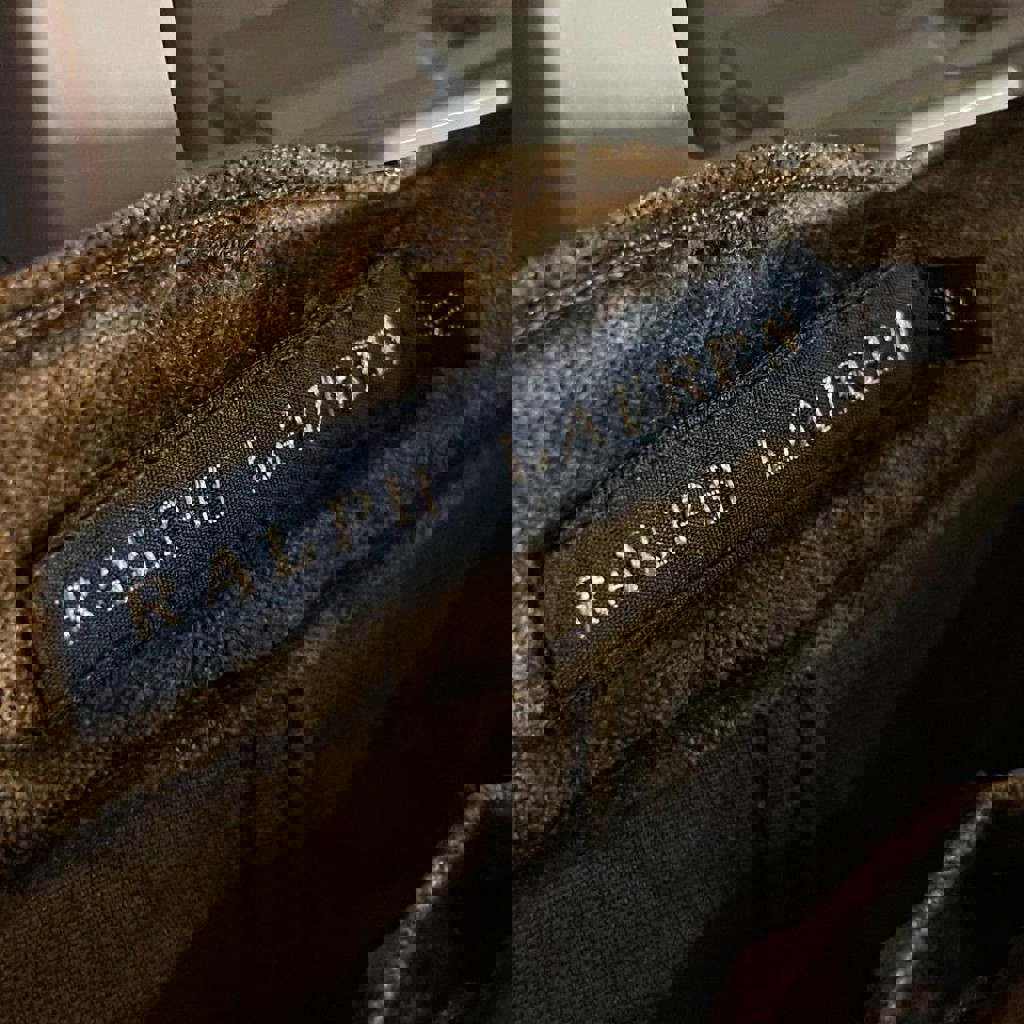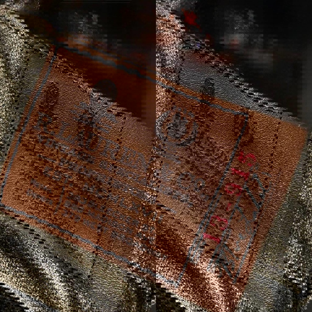 Оригинальные джинсы Ralph Lauren. Ткань с мягкой, бархатистой фактурой — между денимом и вельветом (brushed cotton). Плотные, тёплые, отлично держат форму. Сложная внутренняя отделка: heritage-принты, каллиграфия, фирменные штампы. Кнопка с гравировкой Ralph Lauren est. 1967. Благородный оливково-коричневый оттенок с винтажным эффектом. По духу близки к RRL / archive denim. Размер: 32.