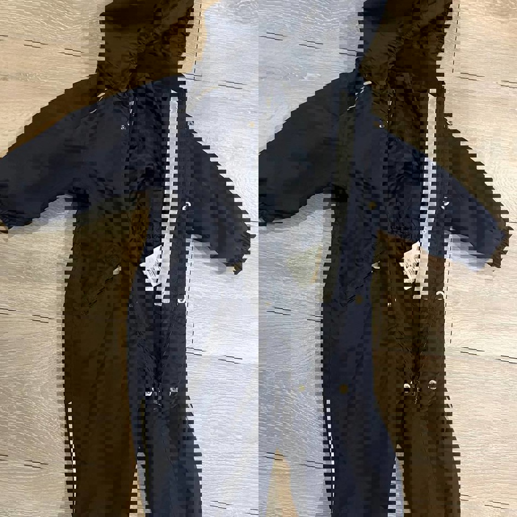 Комбинезон Reima 80+6. Без утеплителя. Хорошая вещь на местную осень и слякотную погоду, одевали с поддевой или комбезом. Из нюансов - нашивка вытерлась совсем, в остальном все в норме.
