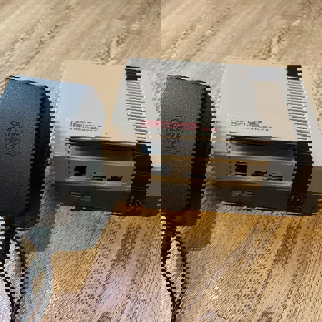 На базе Rapsberry Pi 3 B+. В корпусе Nespi Case. В комплекте оригинальный Rapsberry Pi блок питания, SD карта 64 Gb. Установлен Recalbox, закачаны игры (NES 8 bit, SNES 16 bit, Play Station 1, dreamcast итд).