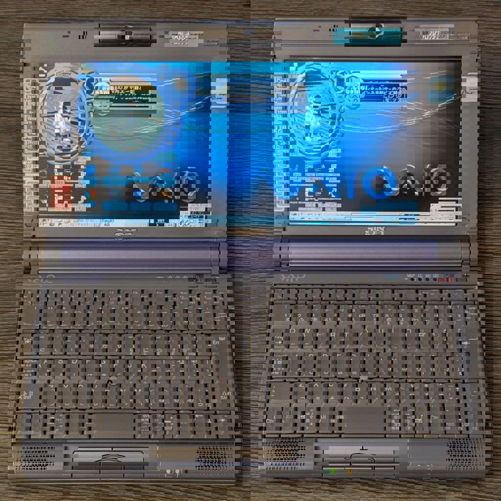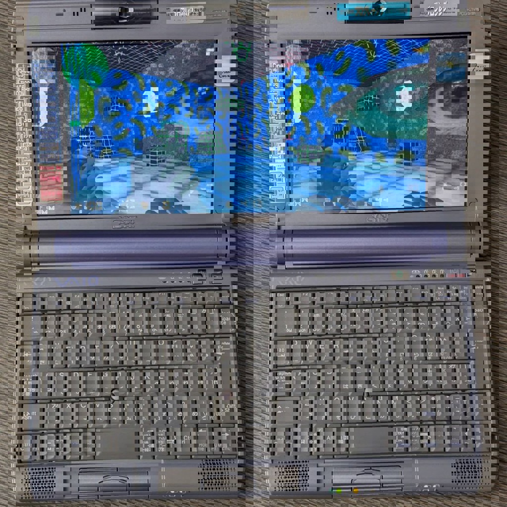 Полная комплектация с коробкой и документами. Отличное для своего возраста состояние. Аккумулятор работает и держит заряд. Правый аудиоканал шумит и был отключён. ОС – оригинальная японская Windows ME. Характеристики: Процессор Transmeta Crusoe TM5600 600mhz, 128mb оперативки, Видеочип ATI Rage Mobility M1 8mb, Экран 8.9" 1024x480, Вес около 1кг, Поворотная веб-камера с CCD-матрицей, фирменное колесо Jog Dial, видеовыходы AV и miniVGA; Кардридер Memory Stick, 3.5 аудиовход+выход, USB 1.1, CardBus, iLink/FireWire 400, модем. Комплектация: Сам ноутбук – установлен m.2 SSD 64гб с быстрым доступом. На диске D: подборка игр, пропатченных под разрешение экрана, Диски восстановления системы до заводского состояния, Внешний CD-дисковод PCGA-CD51, Microsoft Office XP, Зарядное устройство, Аккумулятор, Кабель для модема, AV-кабель, Много-много японских бумажек.