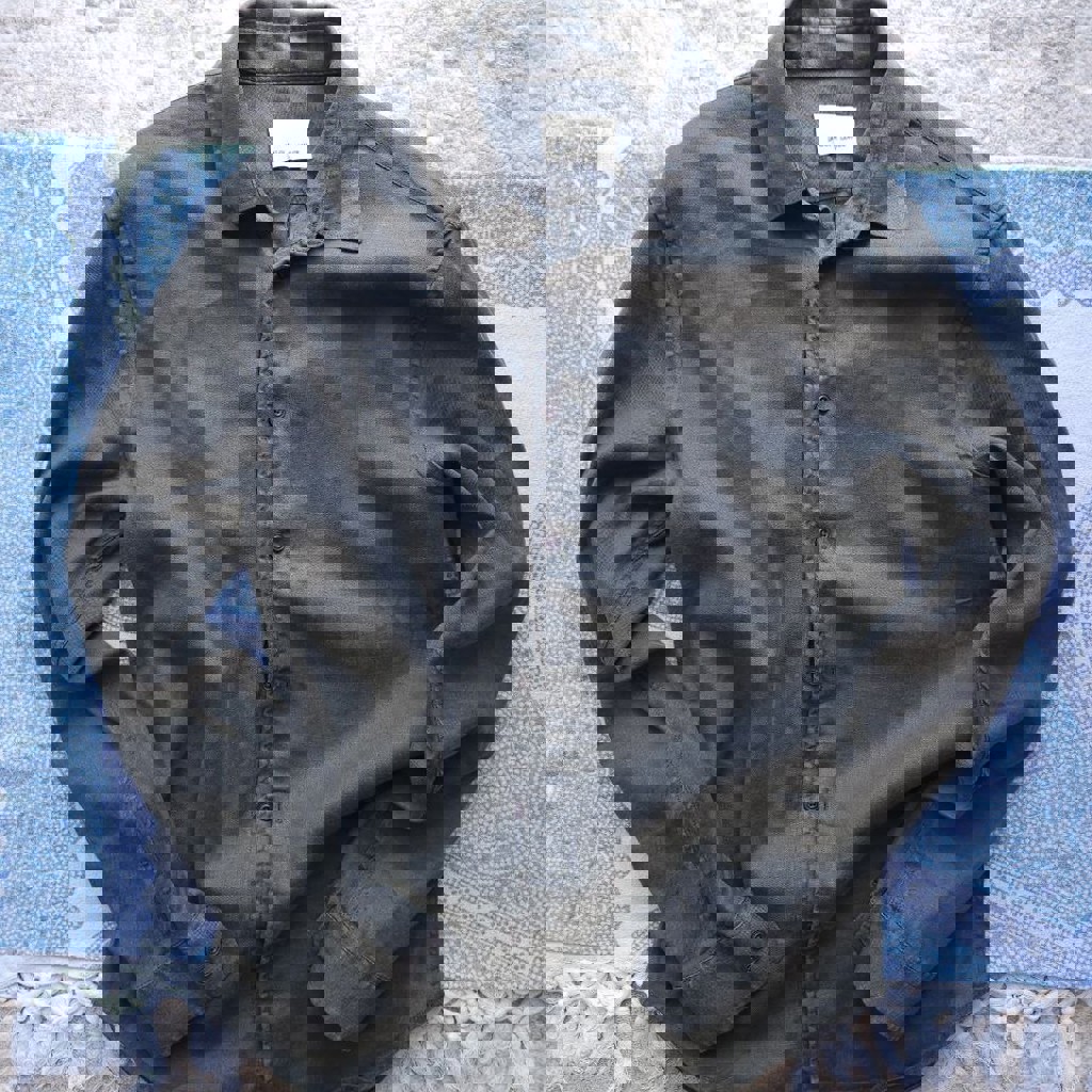 Сдержанный скандинавский минимализм. Оттенок deep green / хаки. Хороший состав: лен + лиоцелл. Ткань дышит, мягкая на ощупь и красиво ложится по телу. Легкая небрежность, расслабленный стиль. Размер M (хорошо сядет и как relaxed fit).