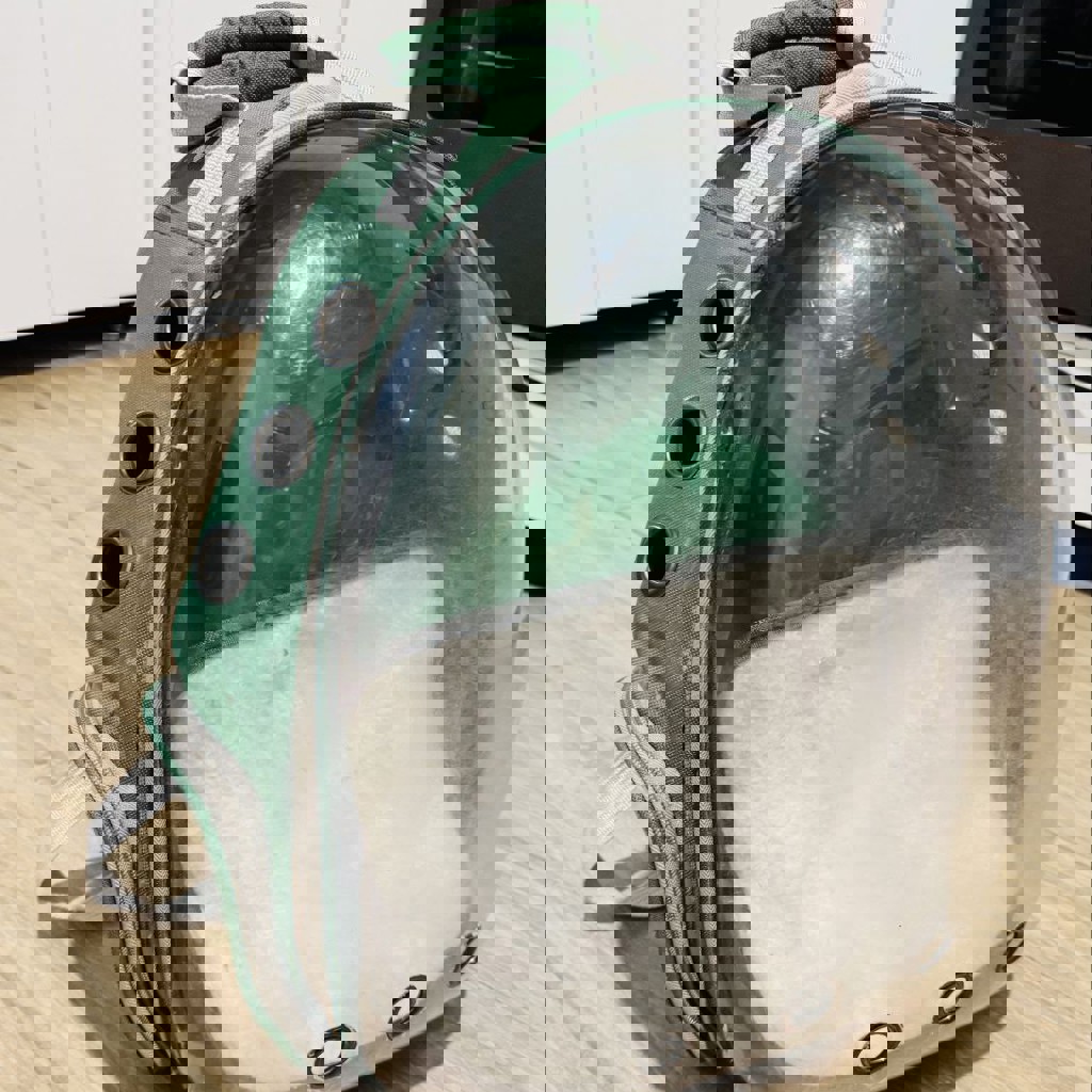 Прочная, удобная модель с прозрачной передней стенкой и вентиляцией. Отлично подходит для прогулок и поездок. Состояние хорошее.