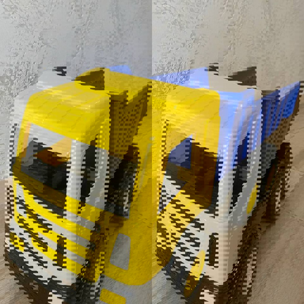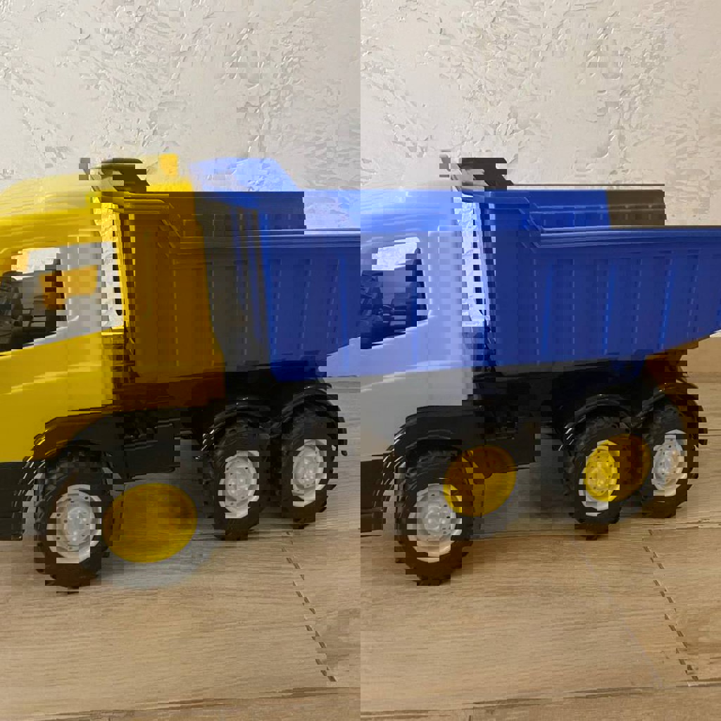 Продаём нашего «железного» коня. Не хлипкий пластик, а настоящий неубиваемый монолит. Оригинал, производство Италия. Пластик очень плотный и качественный, переживёт любые приключения. Вместимость: Длина кузова 45 см – можно возить все игрушки разом. Кабина тоже просторная, туда легко помещаются разные игрушки. Прочность: Проверен весом в 15 кг – кузов выдерживает, хотя катать в нём детей не советуем из соображений безопасности. Габариты: Длина 70 см, ширина 25 см.