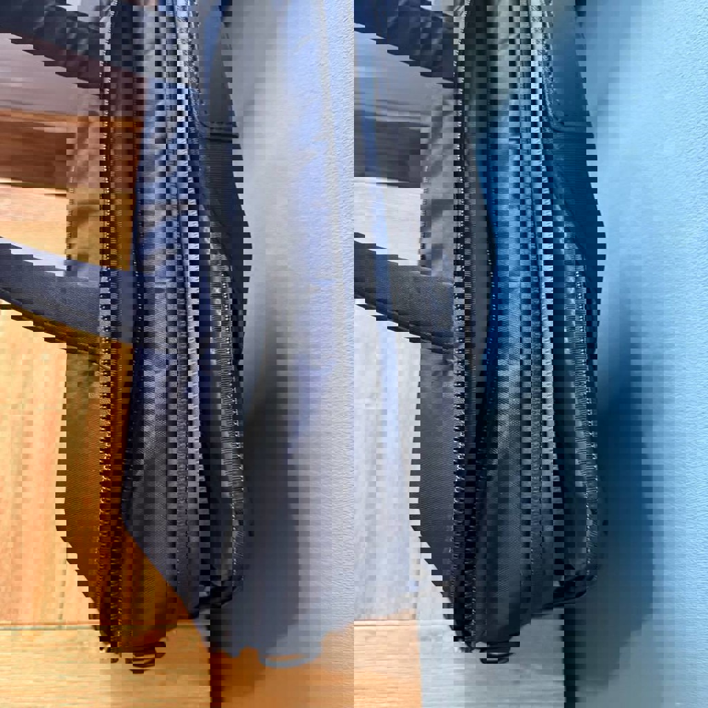 Сумка для ноутбука из плотного текстиля (полиэстер или нейлон). Цвет: тёмно-синий (navy). Назначение: для ноутбуков 13–15.6”, документов и планшетов. Основное отделение на молнии, передний карман на молнии. Внутри мягкий отсек для ноутбука и органайзер. Возможность носить за ручки или на плечевом ремне (который лежит внутри).