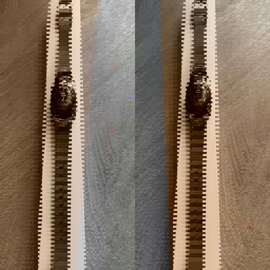 Заряд держит до 3 дней, есть небольшие сколы по корпусу, как и на любых часах, носили 6 мес. Есть коробка и зарядка оригинальная. Ремешок тоже родной, не рванный.