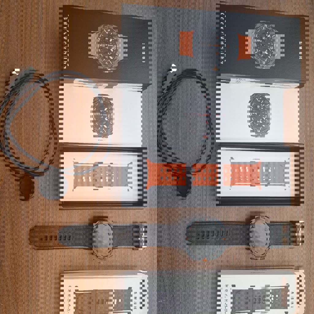 Полный комплект + Дополнительный ремешок в комплекте. Новые часы, носил неделю, продаю потому что вернулся на ios, все остальное время лежат в кробочке. Гарантия от зуммера. Куплены 11.11.2025.