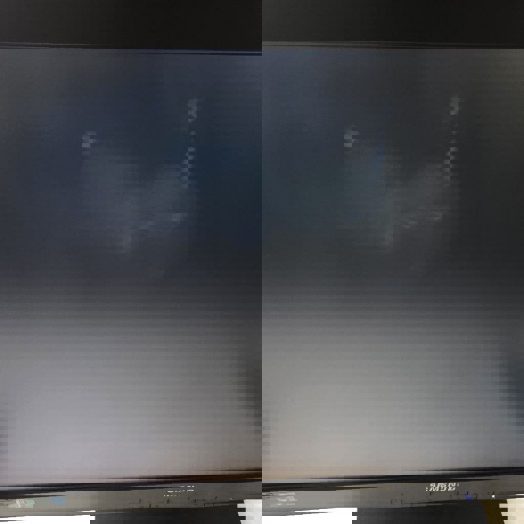 Есть царапины на подставке, не влияющие на работу устройства. Есть белое пятно в верхней части, наблюдаемое на абсолютно чёрном экране.