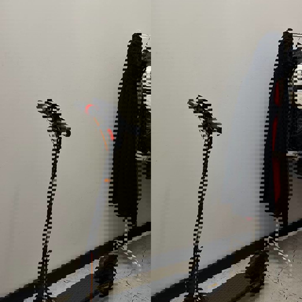 В отличном состоянии. Всё работает идеально, батарея держит хорошо. Самокат мощный, удобный для города. Использовался аккуратно.
