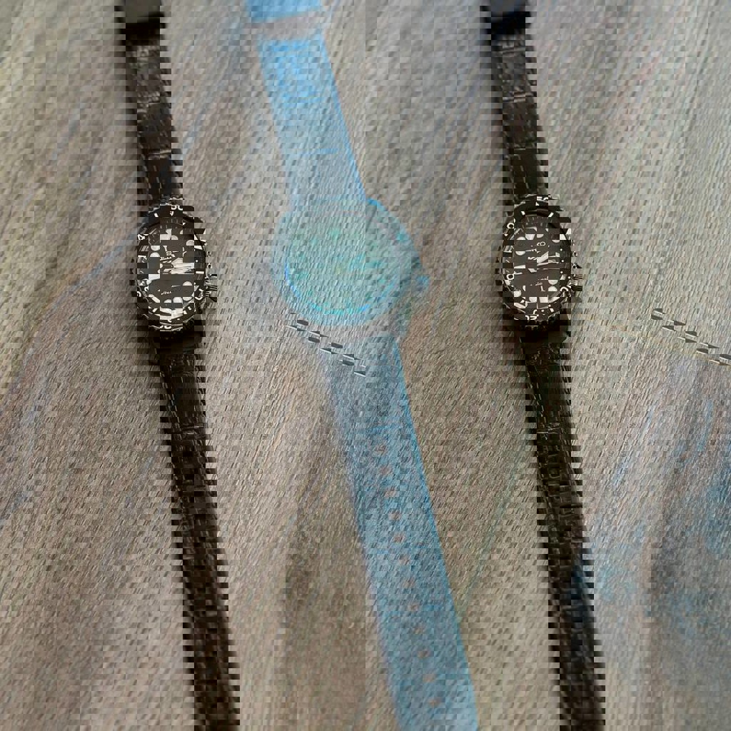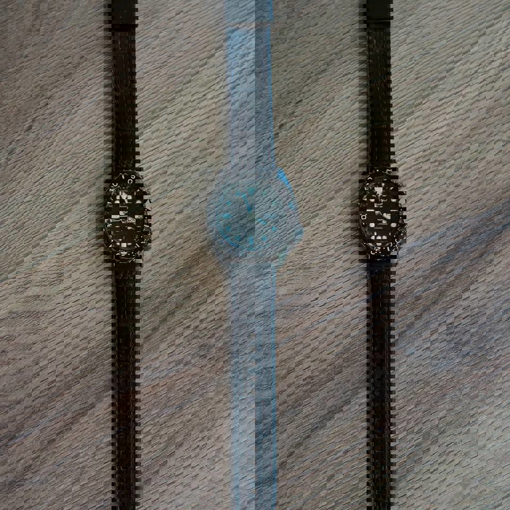 Стильные японские автоматические часы на механизме Seiko 4R36 — надёжный, точный, с ручным заводом и стоп-секундой. Часы не требуют батареек, работают от движения руки. ✔️ Японский автомат 4R36 ✔️ Ручной и автоматический завод ✔️ Стоп-секунда ✔️ Яркая люма Lumibrite ✔️ Односторонний безель ✔️ Диаметр около 42 мм — отлично сидят на руке ✔️ Чёрный кожаный ремень (выглядит дороже классического NATO) Состояние корпуса хорошее, стекло чистое. Часы всегда носились аккуратно.
