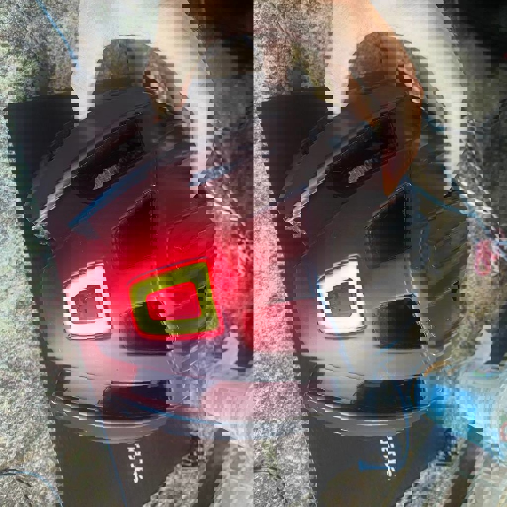 Шлем Trinx, размер 57-62, с фонариком. Есть коцка, на фото.