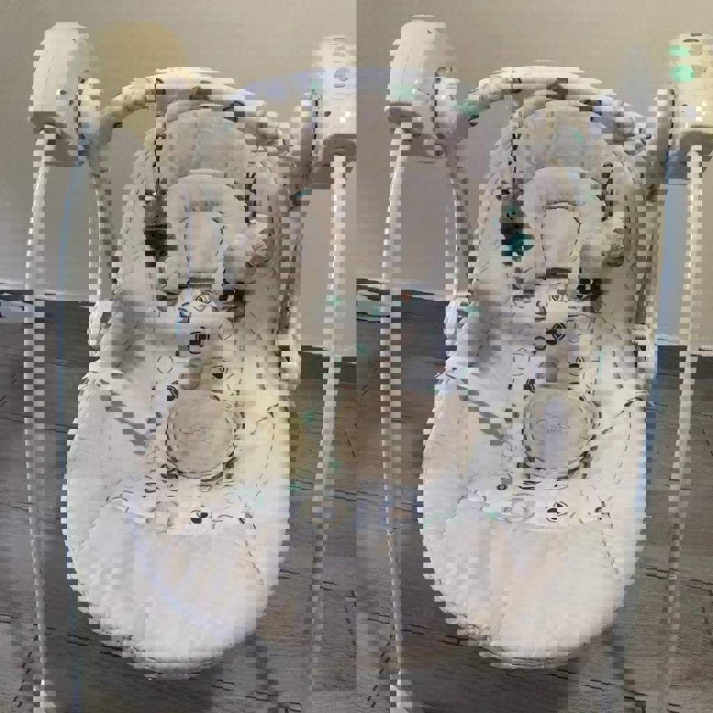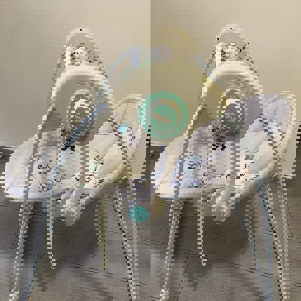 Можно использовать с первых дней жизни крохи: есть ортопедический подголовник. Над малышом расположена дуга с двумя подвесными мягкими игрушками. Есть возможность выбирать одну из пяти скоростей укачивания. Есть встроенный музыкальный блок, можно включить воспроизведение мелодий (12 шт.). Есть таймер укачивания. Можно регулировать громкость. Чехол сделан из мягкой ткани, чехол съемный.