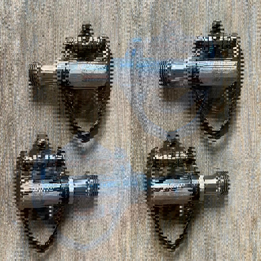 Самые легкие односторонние педали от Shimano под стандарт SPD. Если вы ищете уровень Ultegra для своего гравийника или туринга, чтобы не жертвовать весом и эстетикой — это ваш выбор. Класс: Ultegra level (Road Touring / Gravel). Вес: всего ~279г (пара) — заметно легче аналогов. Состояние: Технически — идеал. Встегивание четкое, подшипники обслужены, вращение плавное. Визуал: Есть характерные для этой модели потертости краски (болезнь темного покрытия Shimano), на работу не влияют.