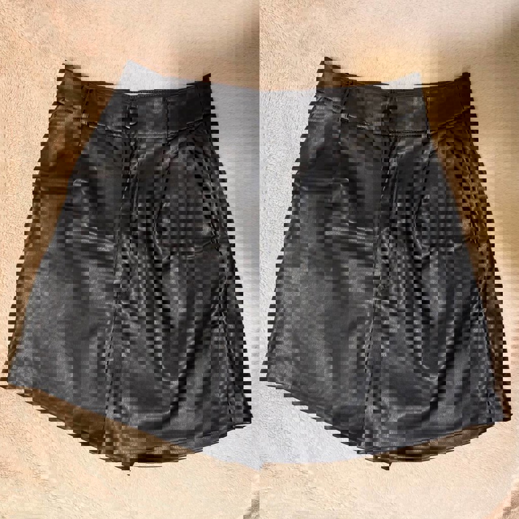 Стильные чёрные шорты из качественной искусственной кожи от Stradivarius. Модель с высокой посадкой, хорошо держит форму, выглядит эффектно и легко сочетается с базовыми и вечерними образами. Застёжка на пуговицу, аккуратный крой, мягкий материал. Подойдут как для повседневных образов, так и для выхода вечером.