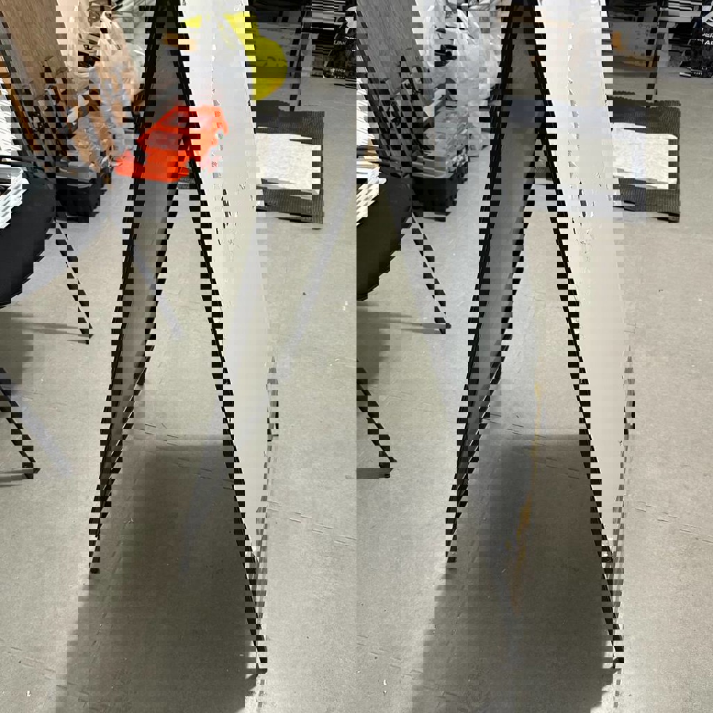 Очень прочный, сделан из тоненькой проф трубы, обшит панелями из пластика на который клеится ваша реклама. Когда он раскрыт, то внутри обе стороны дополнительно держит тросик - очень устойчив!