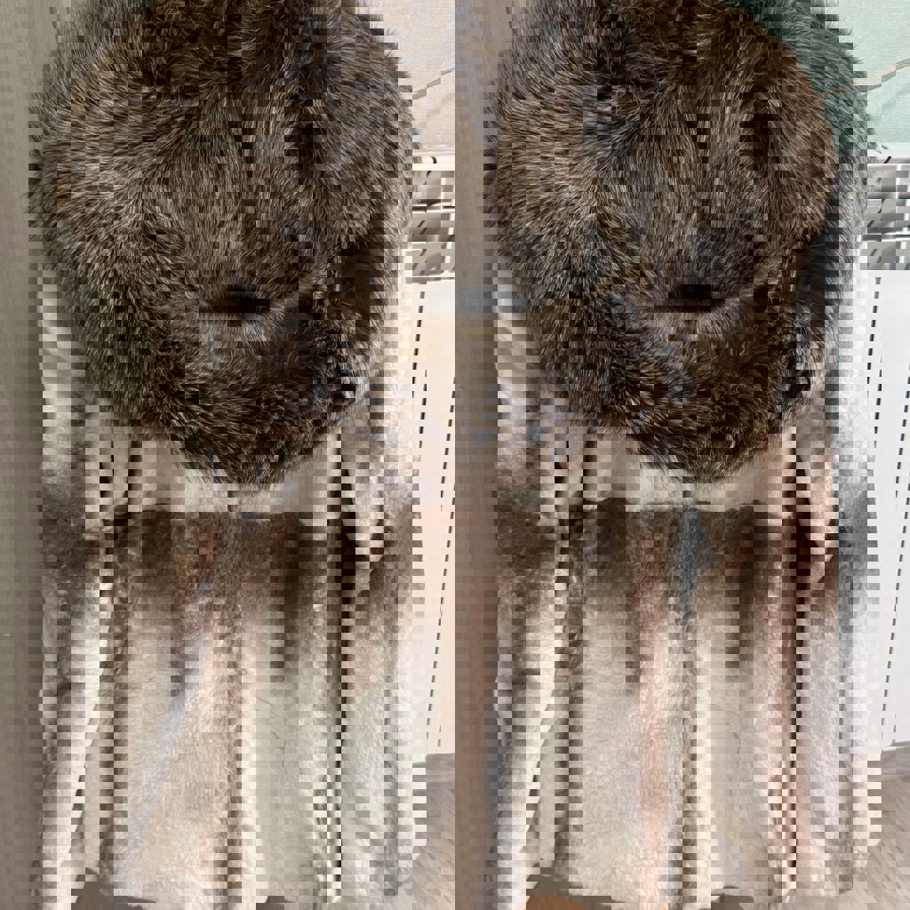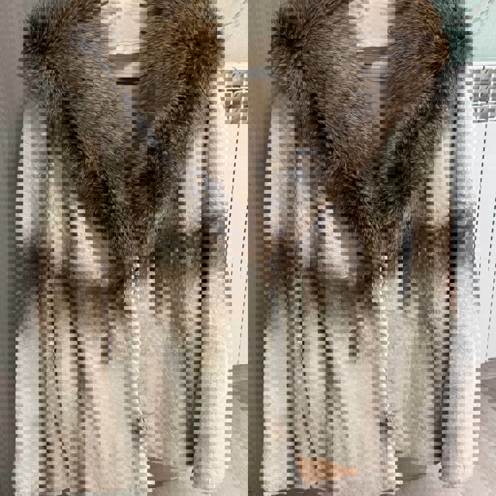 Шуба из стриженного меха бобрика с капюшоном и 2-мя карманами, застежки клипсы. Б/у. Размер 36. Небольшой дефект, чуть чуть распустился шов под биркой (есть на фото)
