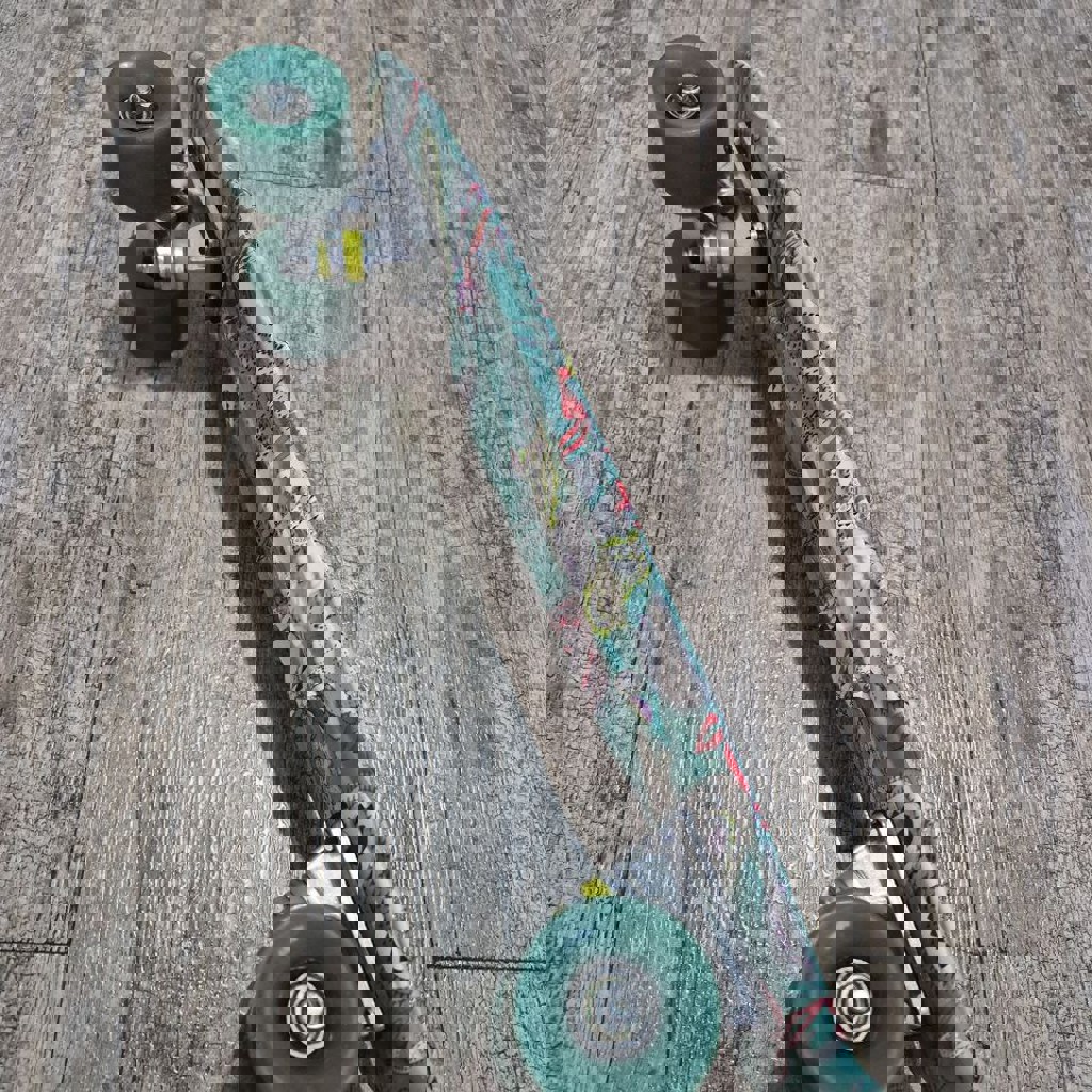 Дочь каталась на нём только дома, можно сказать, что он как новый. В комплекте отдам защиту (шлем, налокотники, наколенники, и ещё есть на запястья защита).