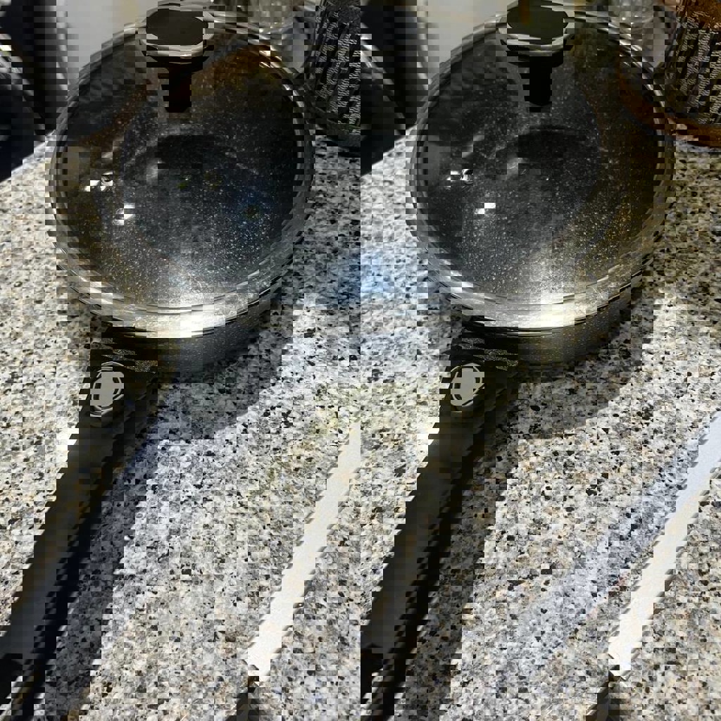 Сковорода со съемной ручкой и высокими бортами.