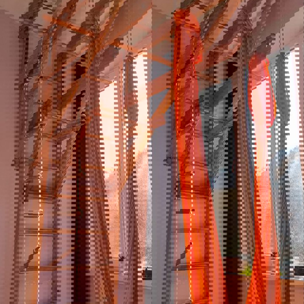 Сделана вручную золотыми ручками нашего папы-инженера. Крепится к стене болтами в 8 местах (к потолку не крепится). Выдерживает и взрослых и детей, пользуемся всей семьёй. Помимо самой лестницы также есть съёмный турник, который можно закрепить на любой высоте и вертолетная лестница. Так же гамак для аэройоги, но совсем недавно он порвался, покупали его на aliexpress за 5 копеек, так что можно легко заменить, очень классная вещь и для детей и для маминой спины. Или вместо гамака повесить качели, например. Заинтересовавшимся можно приехать посмотреть вживую, протестировать, повисеть.