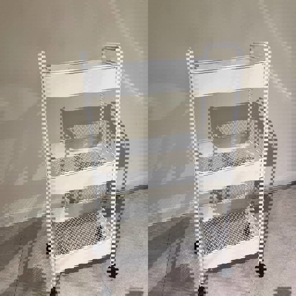 Тележка изготовлена из нержавеющей стали, идеально подходит для хранения и перемещения товаров.