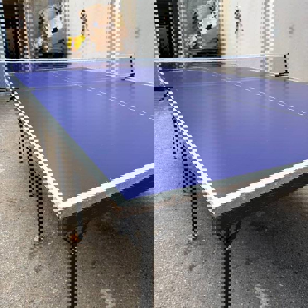 Уличный теннисный стол. Подходит для использования на улице, но не предназначен для дождя и плохой погоды. Состояние: б/у, есть небольшие изъяны (на игру не влияют).