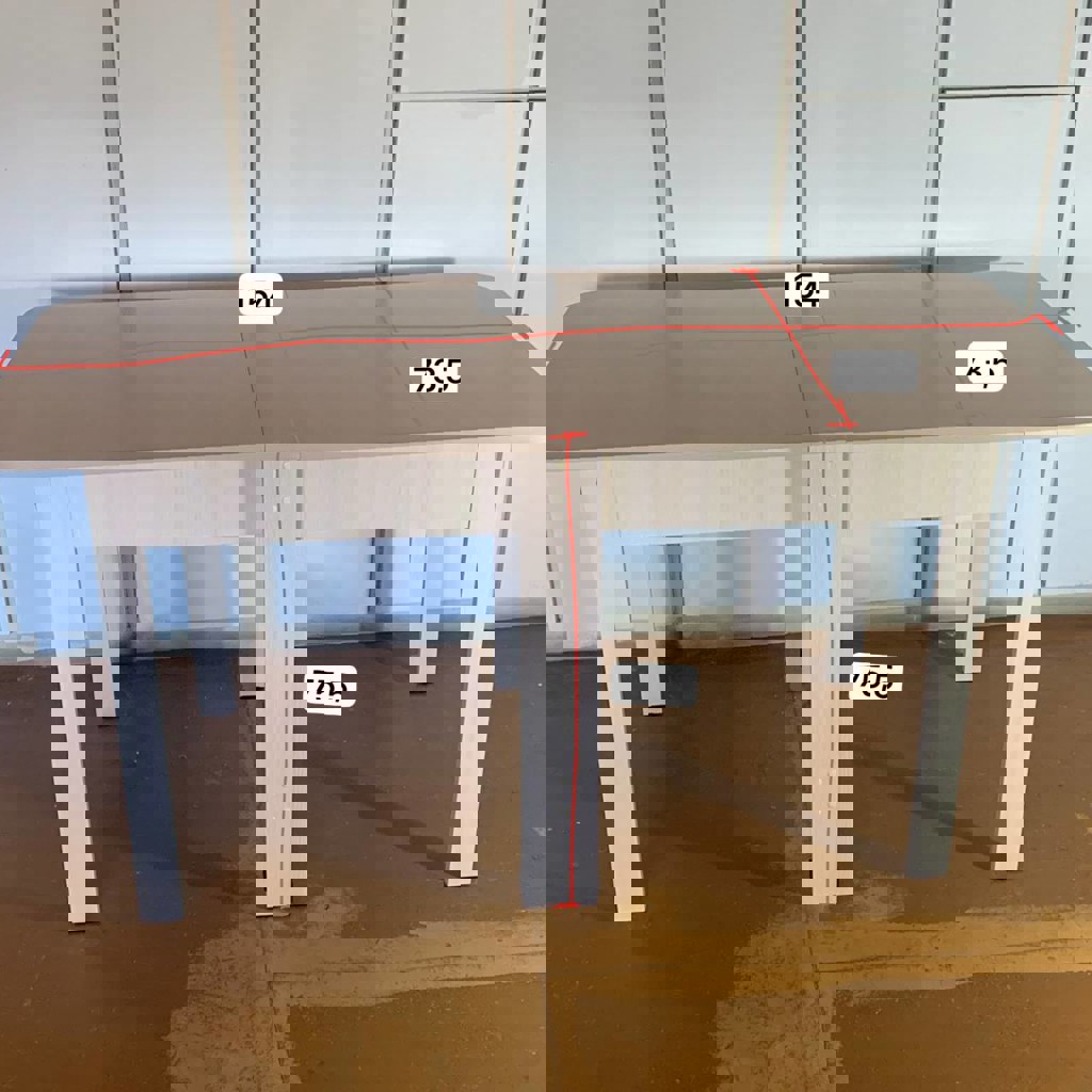 Материал ДСП. Хороший, прочный, достаточно лёгкий можно нести одному в другую комнату, складывается тоже легко. Компактный и большой одновременно, размеры в разных положениях на фото (размеры в см)