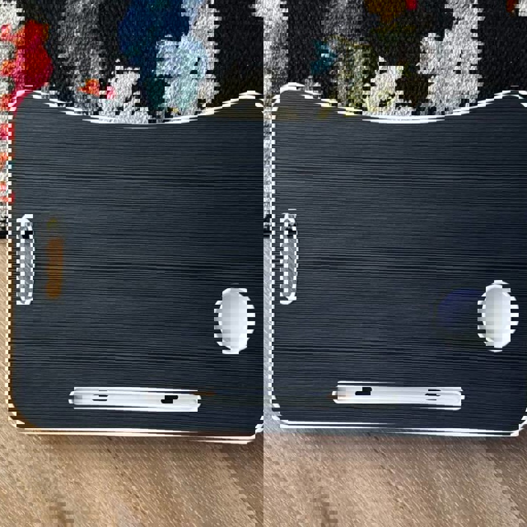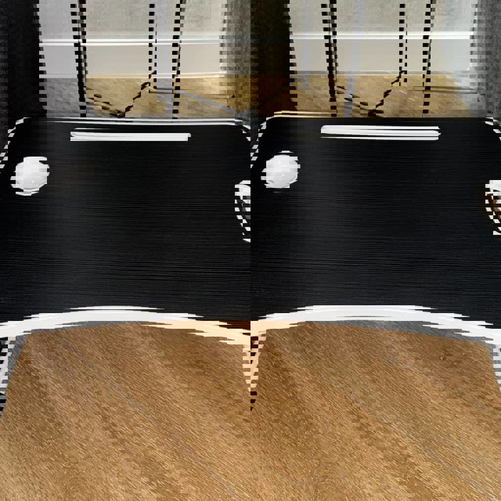 Компактный столик для ноутбука с ножками. Удобно использовать на кровати или на диване. Есть подставка под стакан и слот для планшета/телефона. Состояние: хорошее, всё целое, ничего не сломано. Подойдёт для работы, учёбы или просмотра фильмов.