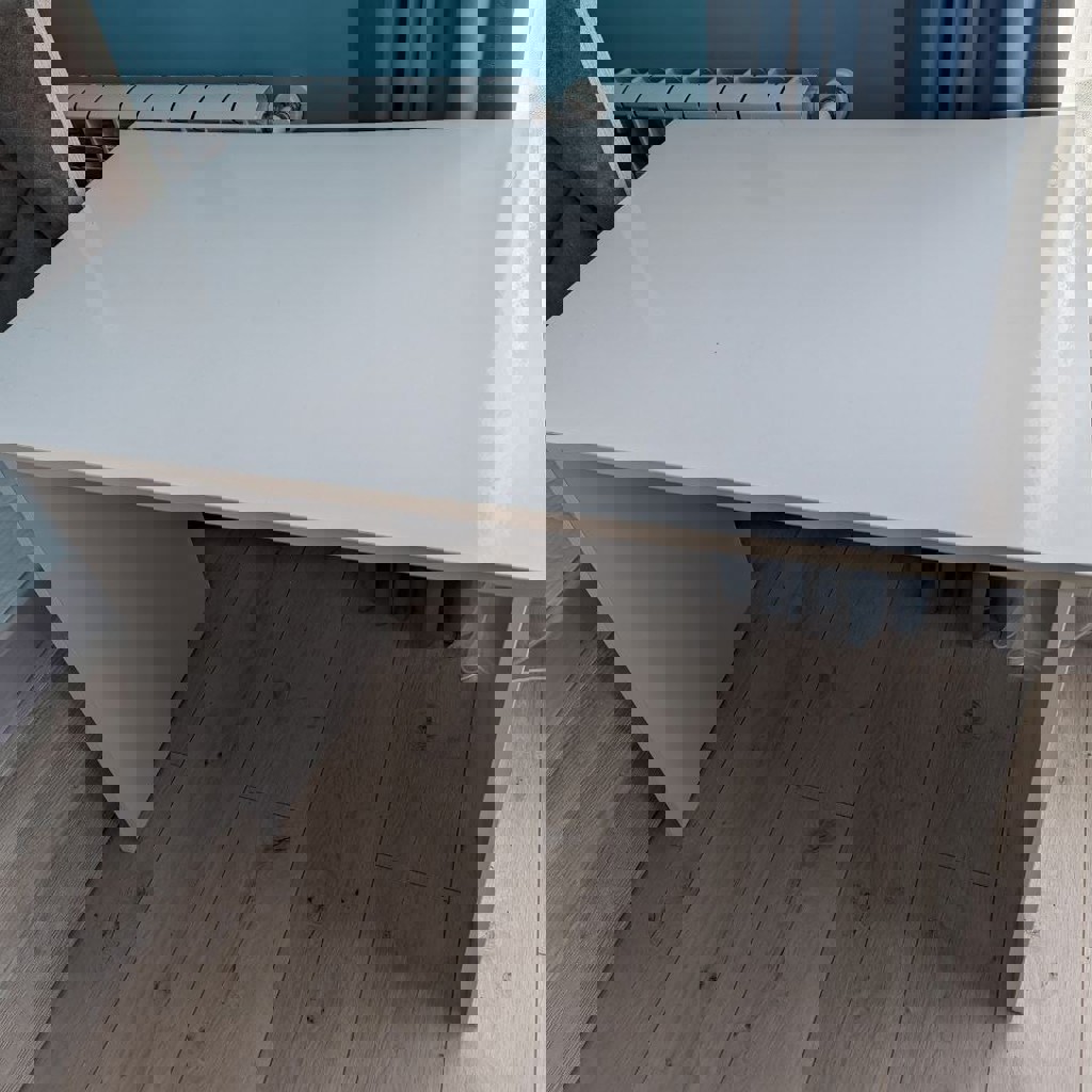 Продам столы, б/у 1 мес: белый 60х90 см, коричневый 55х100 (у этого особенность, когда болты закрутили в столешницу, с обратной стороны, они оказались на 0.5-1мм длиннее (идиоты на заводе).