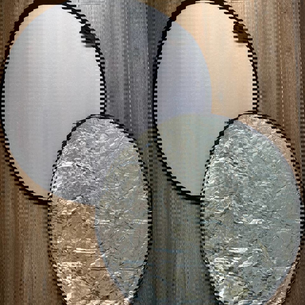 Диаметр - 60 см. Цвета: чёрный, белый, серебристый, золотой. В комплекте белый рассеиватель. Складывается в чехол диаметром 24 см.