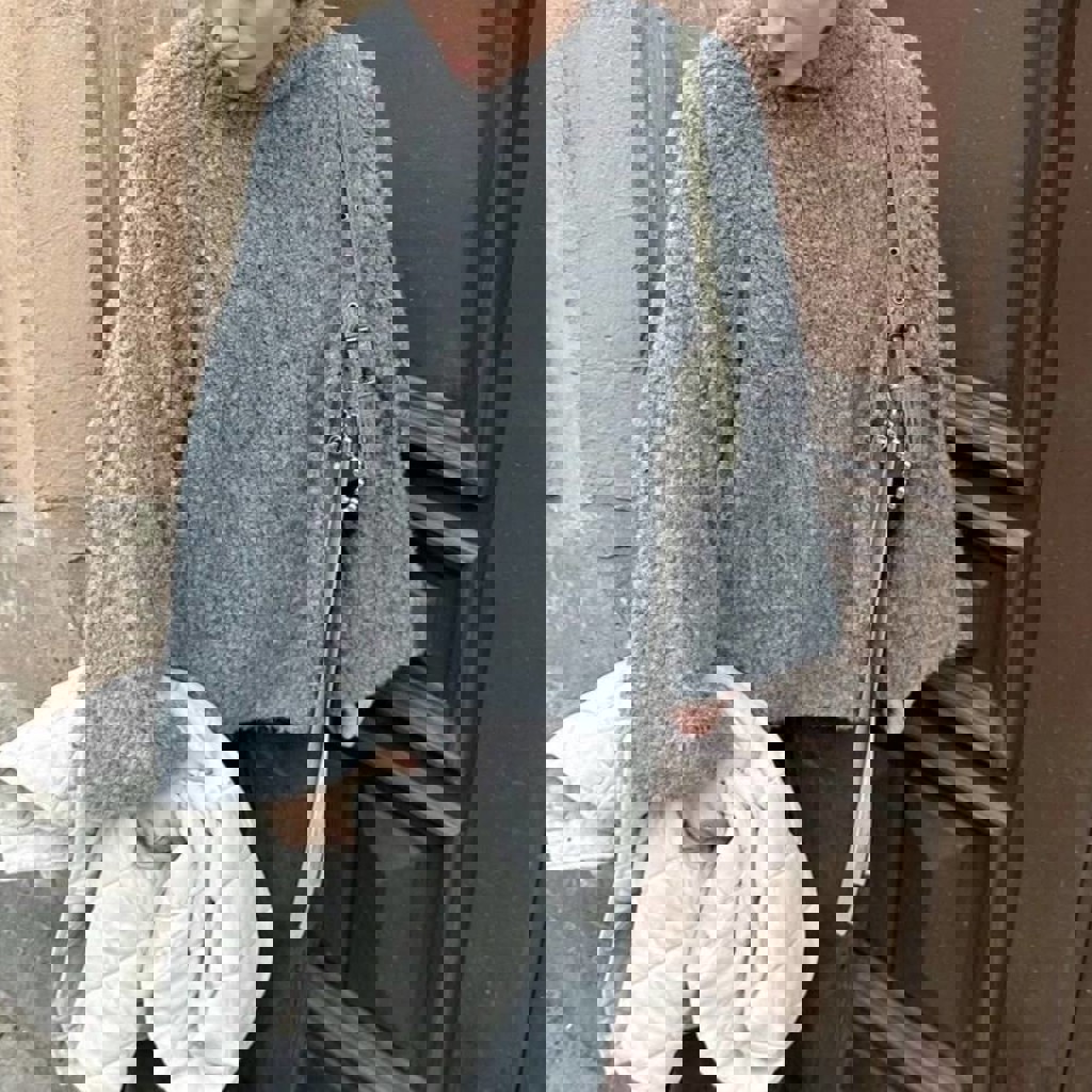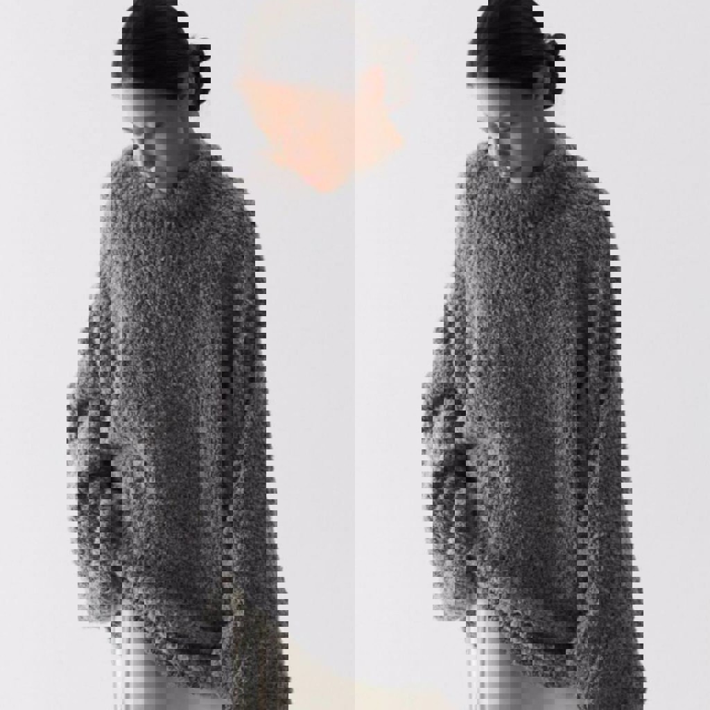40 альпака суперфайн, 20 меринос, 25 акрил, 15 полиамид. очень легкий приятный к телу свитер оверсайз, не скатывается. возможно легкое растяжение, но после стирки форма восстанавливается