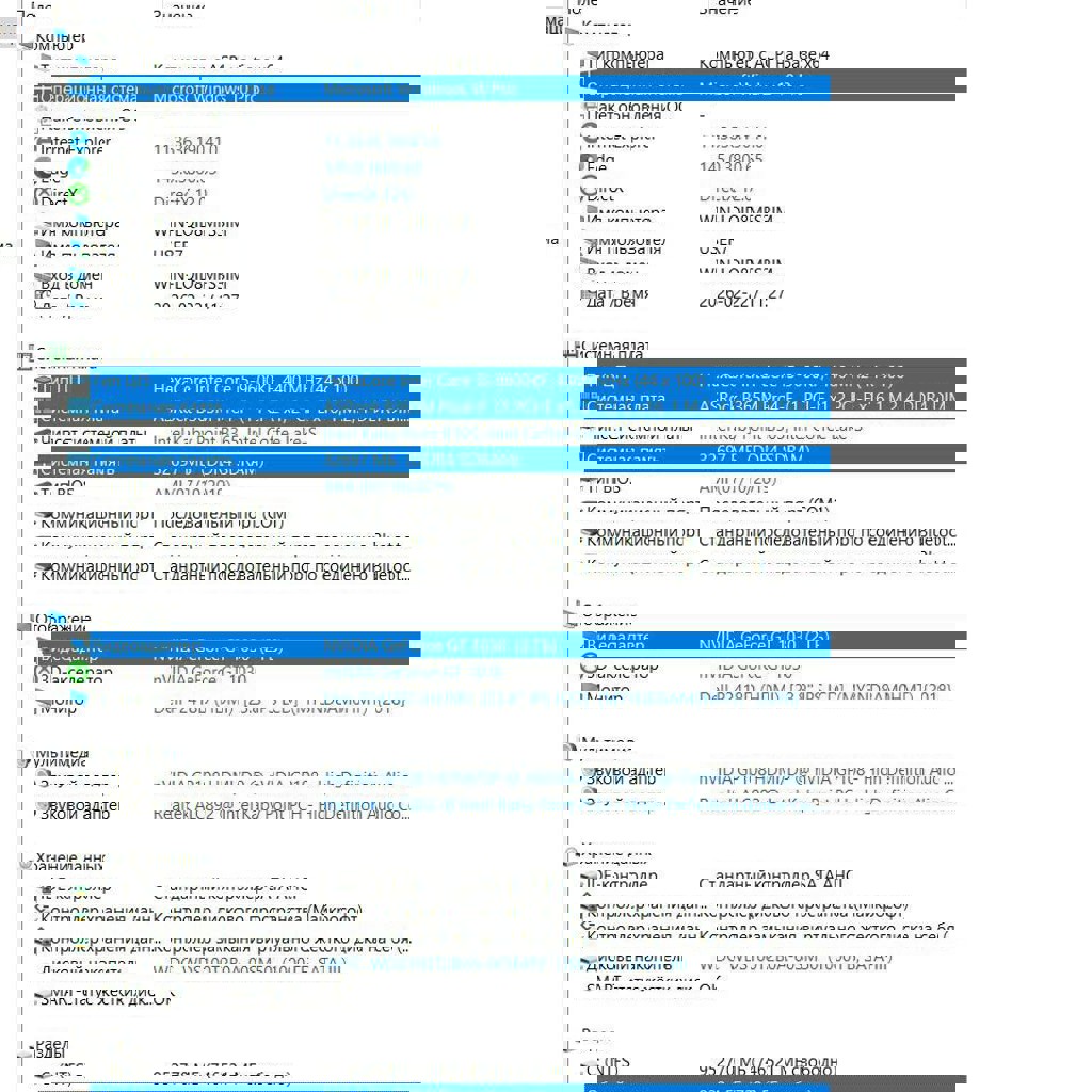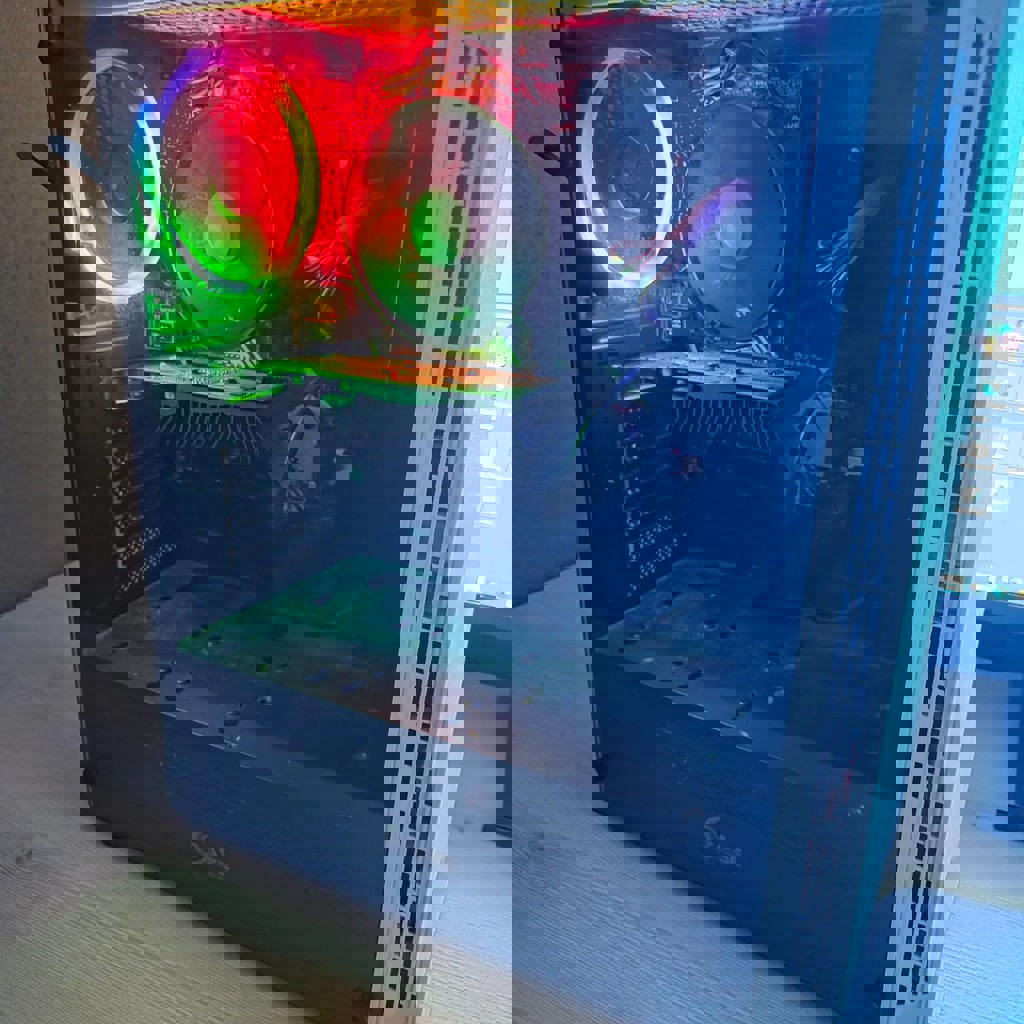 Белый корпус с одной прозрачной стенкой и подсветкой. Процессор: Intel Core i5-9600KF 4400 MHz. Оперативная память: 32 Gb DDR4. Видео: NVIDIA GeForce GT 1030 (2 ГБ). Жёсткий диск: SSD на 1TB. + установлены Wifi и Bluetooth адаптеры. Установлена Windows 10PRO, а также офисные приложения. Система работает очень быстро благодаря большому объёму оперативной памяти и SDD диску.