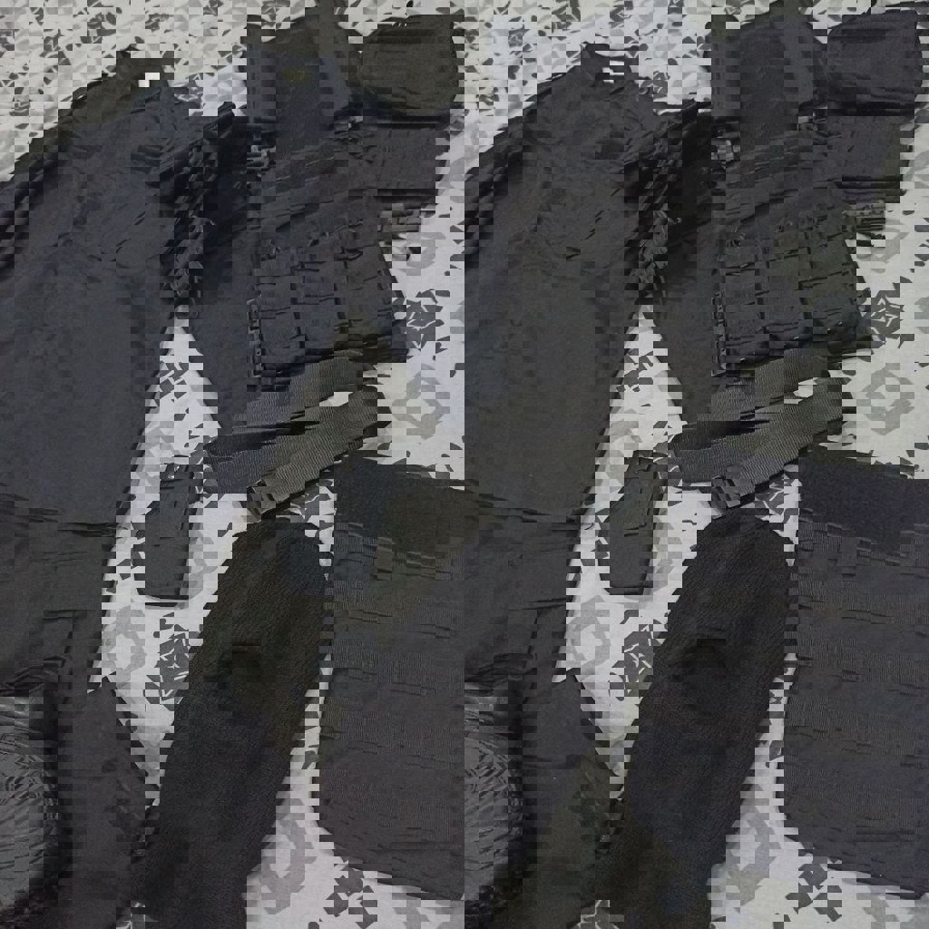 Полный комплект: Куртка, Штаны, Бронежилет, Ботинки, Шлем, Балаклава, Ремень, Наколенники/налокотники, Перчатки, Сумма для вещей, Кобура. Всё совершенно новое, в отличном состоянии.