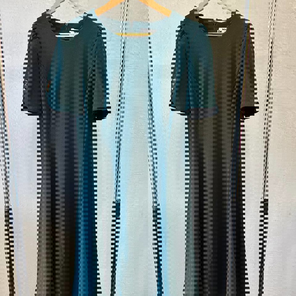 Темно зеленое платье от dkny, размер m-l (ниже колена)