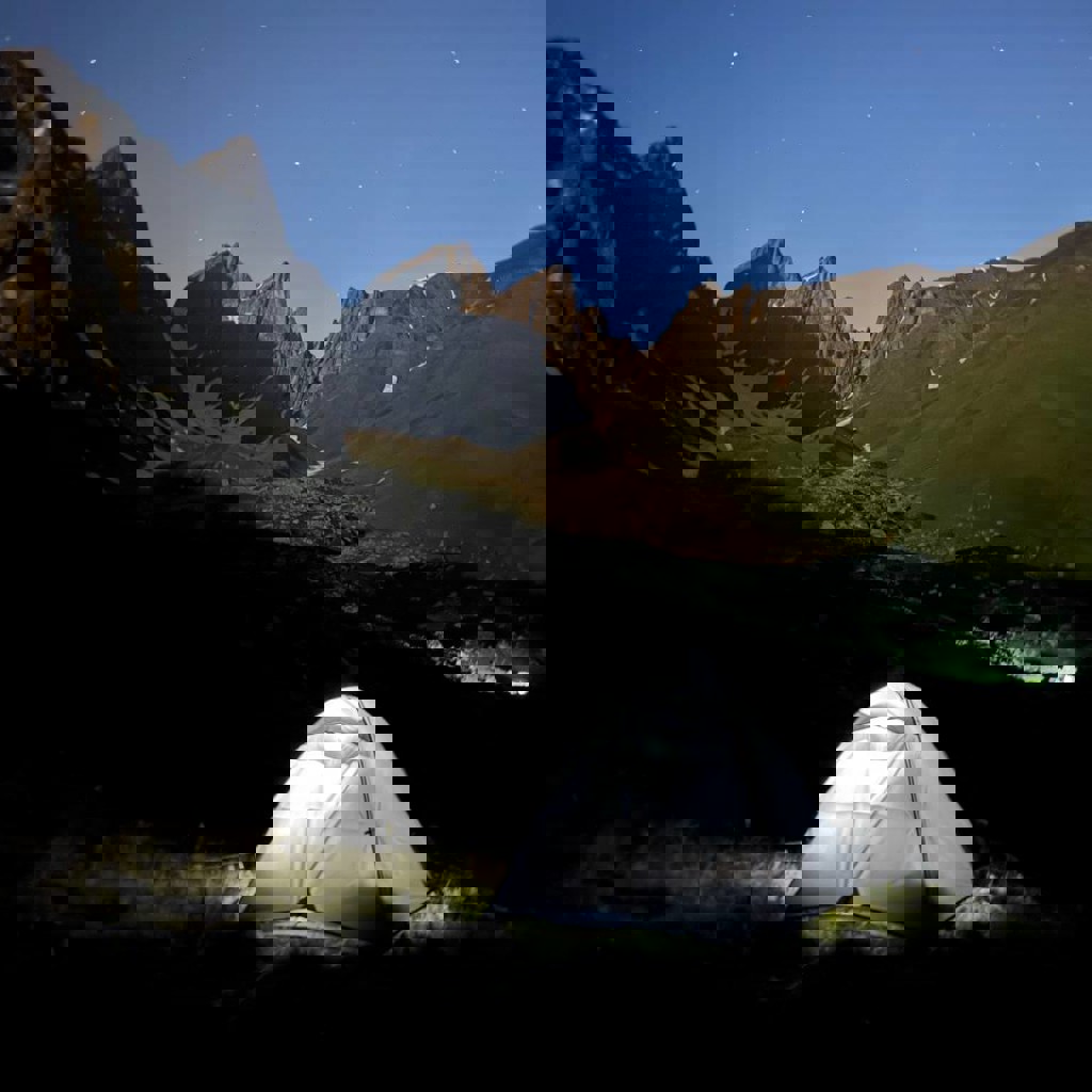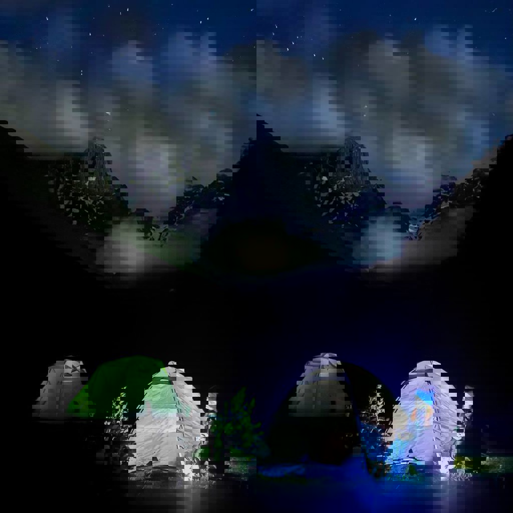 Походная палатка зеленого цвета.
