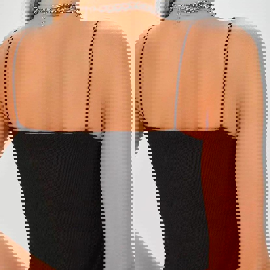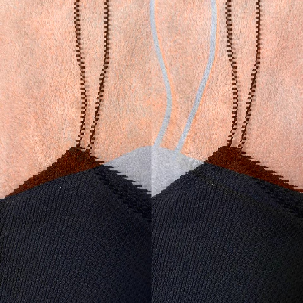 В рубчик, ткань плотная, в два слоя, не просвечивает. Очень качественная вещица! Можно носить и как обычный топ, и как элемент элегантного вечернего лука. Материал 80% хлопок, 15% вискоза, 5% эластан. Размер М. Хорошо тянется, подойдет и на больший размер. Абсолютно новый.