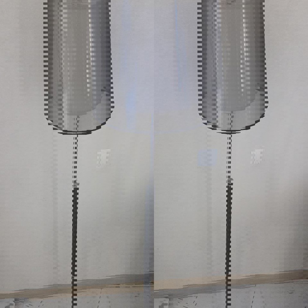 Торшер с двумя 'колпаками' в комплекте — белый и черный, можно снимать и ставить. Минус в вилке, она болтается в розетке.