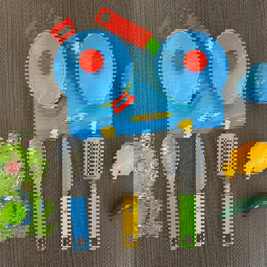 3. Плита с кастрюлей/сковородкой с рыбой , тарелка и приборы. 10 лари