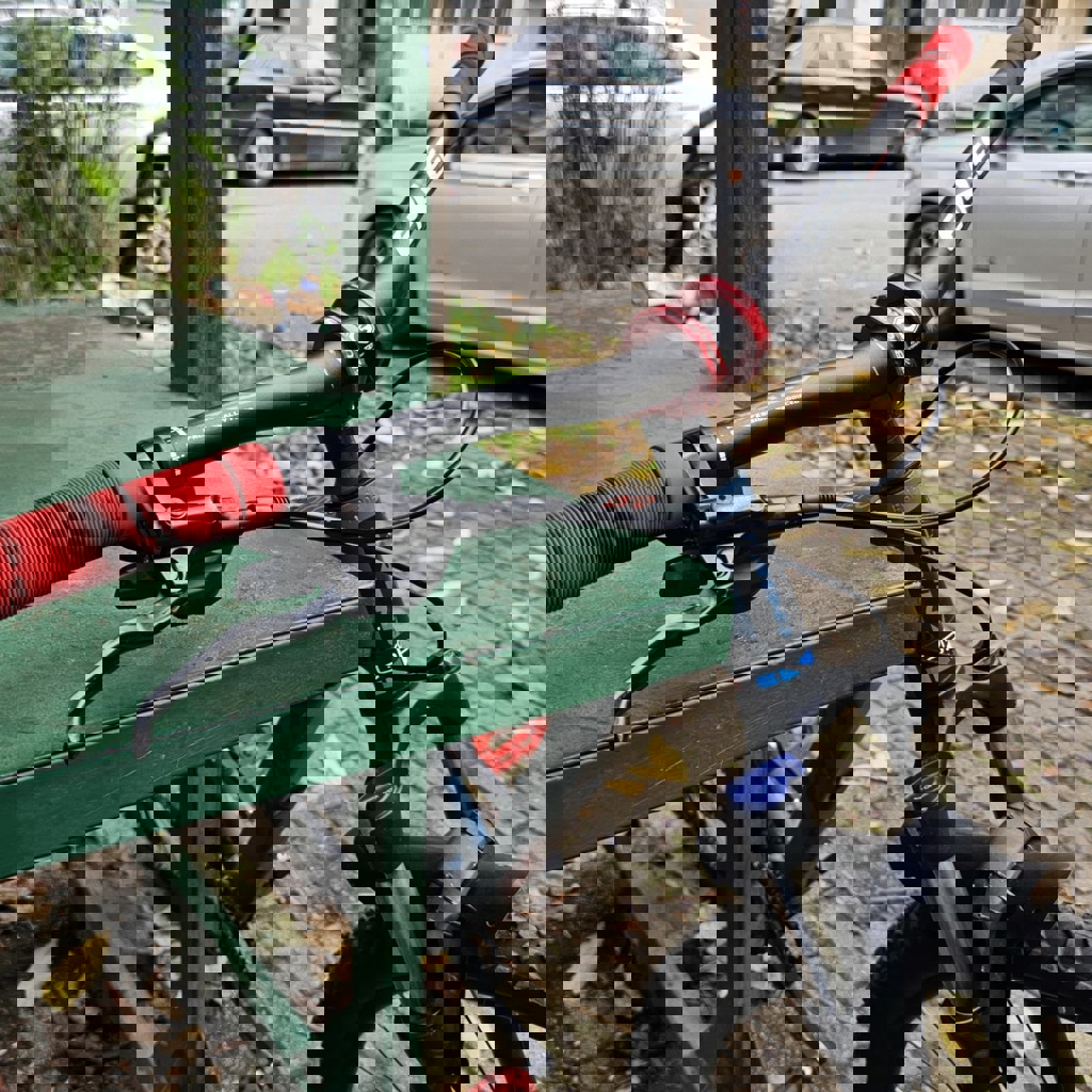С доработками и улучшениями. Есть царапины и потёртости, на работу не влияют. Вилка сток 100мм. Гидравлический тормоз Deore, ручка Shimano MT-200. Шатуны заменены. Передняя звезда 1 для практичности. Втулки на пром-подшипниках. Кассета на 10 передач. Заменен ротор тормоза на больше.