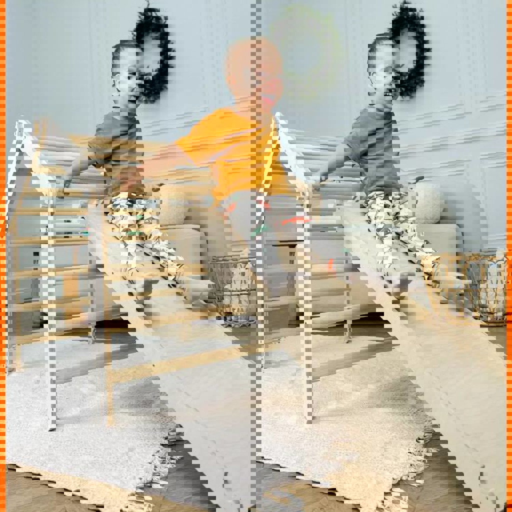Отличный набор для развития крупной моторики: лазание, баланс, координация. Подходит для самостоятельных игр дома. Комплект: • Треугольник Пиклера • Горка/скалодром (двусторонняя). Дополнительно: есть ещё одна секция/часть (доп. модуль). Можно собирать в разных конфигурациях (много вариантов установки).