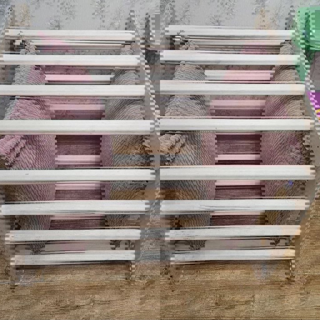 Состоит из 4 деталей. Треугольник выполнен из фанеры (боковые части), перекладины - ольха или береза. С 8 месяцев и до 6 лет. Можно регулировать по высоте.