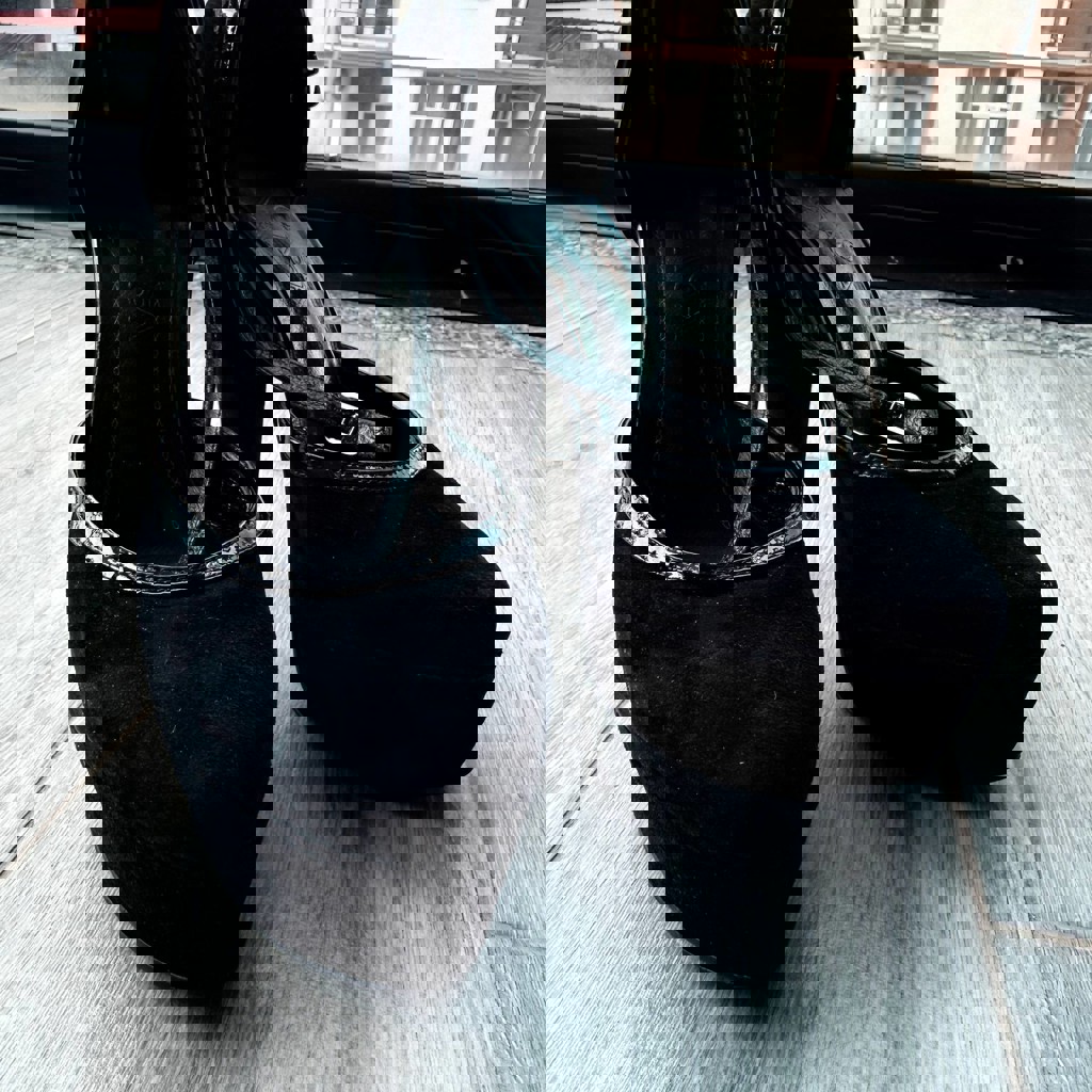 Туфли 36 размера на высоком каблуке в хорошем состоянии. Фиксация на щиколотке. Натуральная замша. Внутри - натуральная кожа. Каблук 13см, высота передней части 4см.
