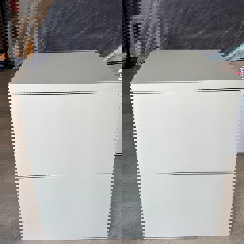 Тумба прикроватная с двумя ящиками выдвижными, цвет приятный бежевый. Подвесная, ящики открываются по нажатию. Размеры: 45х41см, высота 42см.